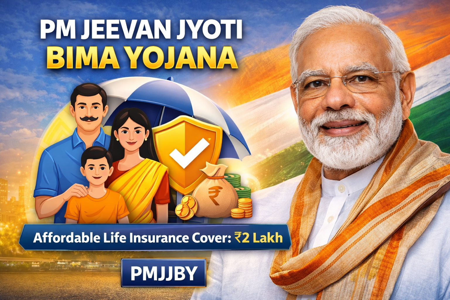 To solve this problem, the Government of India launched PM Jeevan Jyoti Bima Yojana on 9th May 2015. The scheme provides life insurance cover of ₹2 lakh in case of the death of the insured person, in return for a very small annual premium. It is linked with the banking system and works through simple auto-debit from the policyholder’s bank account.